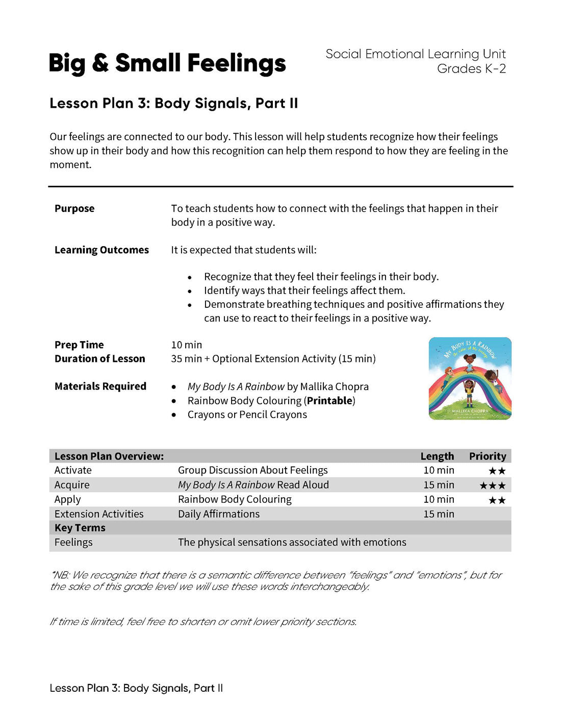 - All Big & Small Feelings lesson plans and accompanying printable material