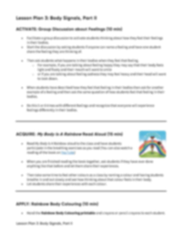 Lesson Plan 3: Body Signals, Part II