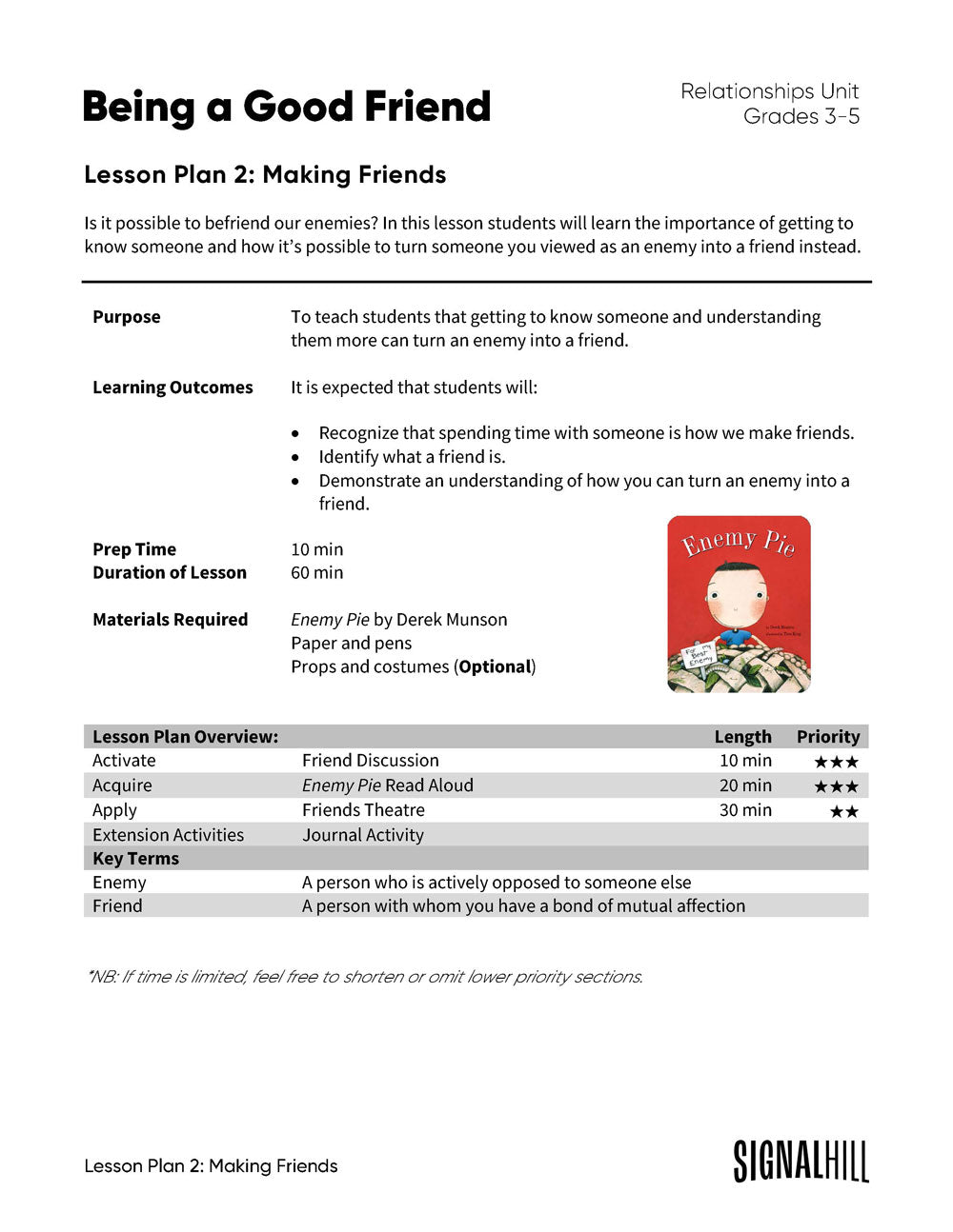 Is it possible to befriend our enemies? In this lesson students will learn the importance of getting to know someone and how it’s possible to turn someone you viewed as an enemy into a friend instead.