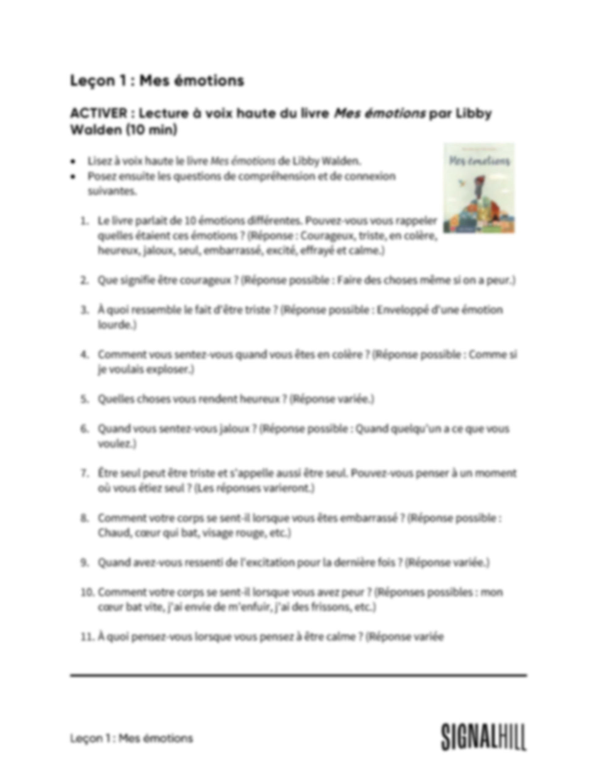 Plan de cours 1: Mes émotions