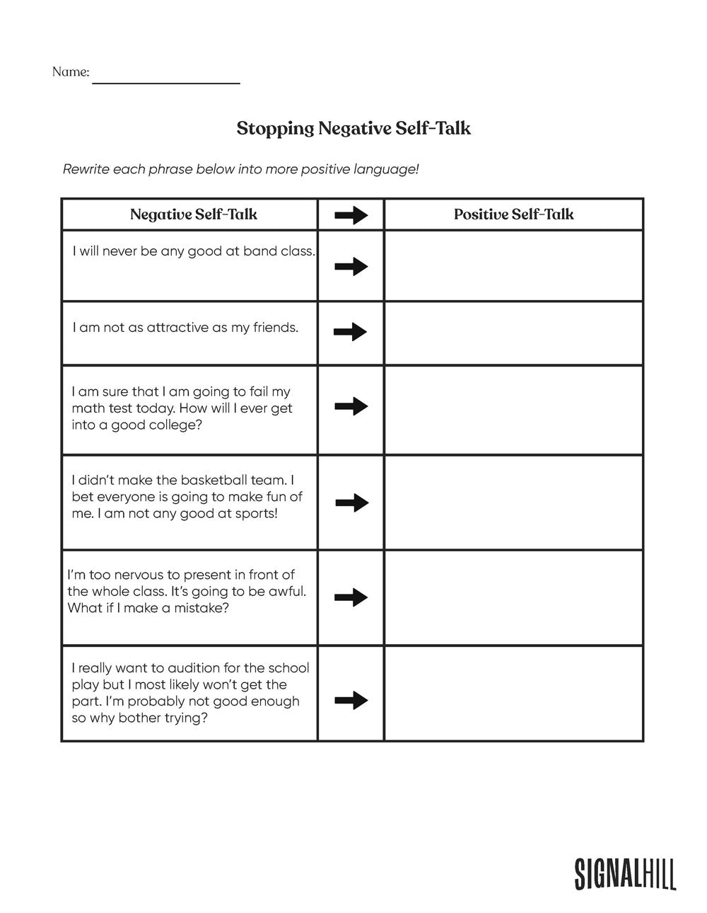 - Rephrasing Negative Self Talk worksheet (Printable)