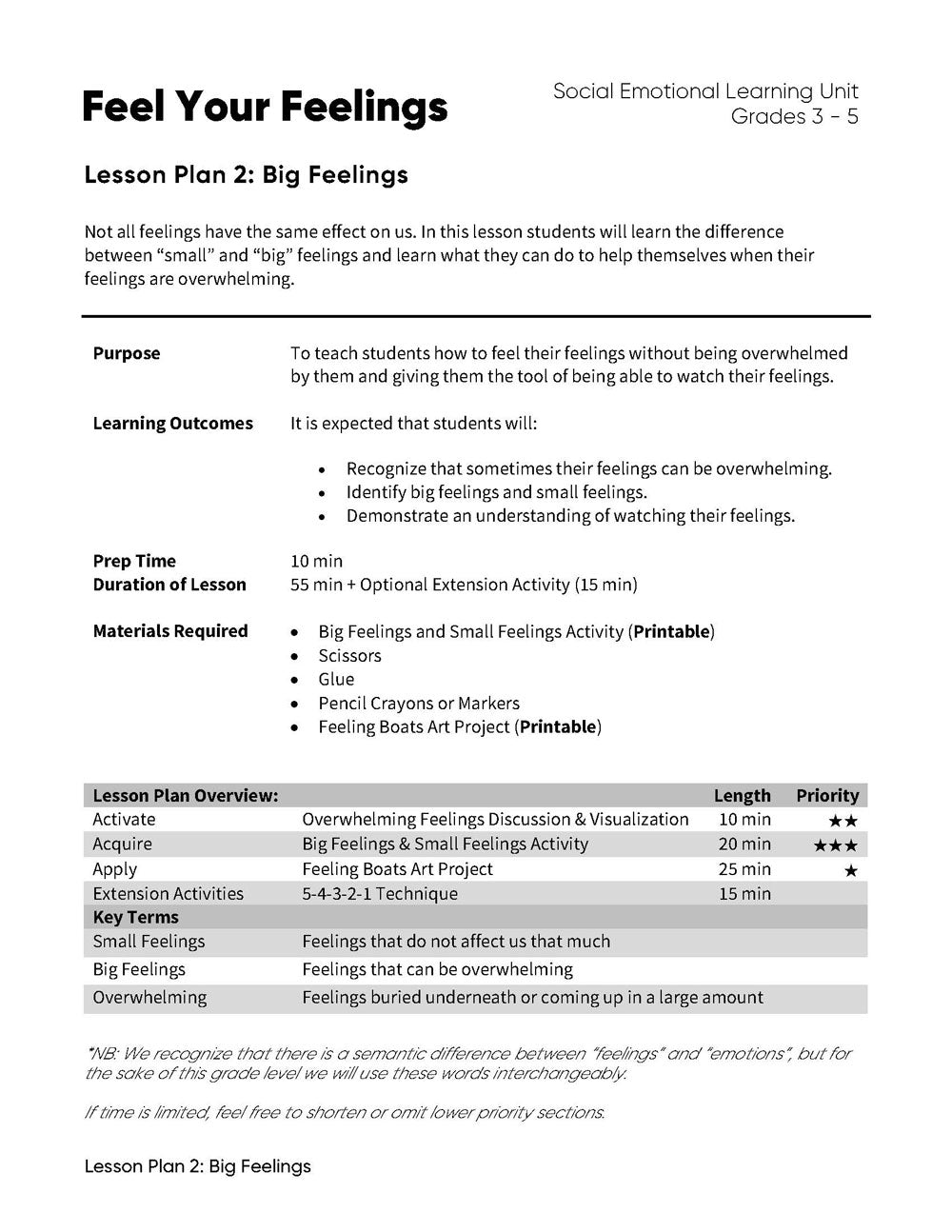 - Lesson Plan 2: Big Feelings