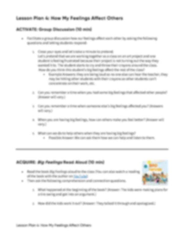 All of us experience big feelings inside us and all around us. In this lesson, students will learn why being aware of how our feelings affect and are affected by those around us is important and also discuss how we can all help each other navigate our big feelings.
