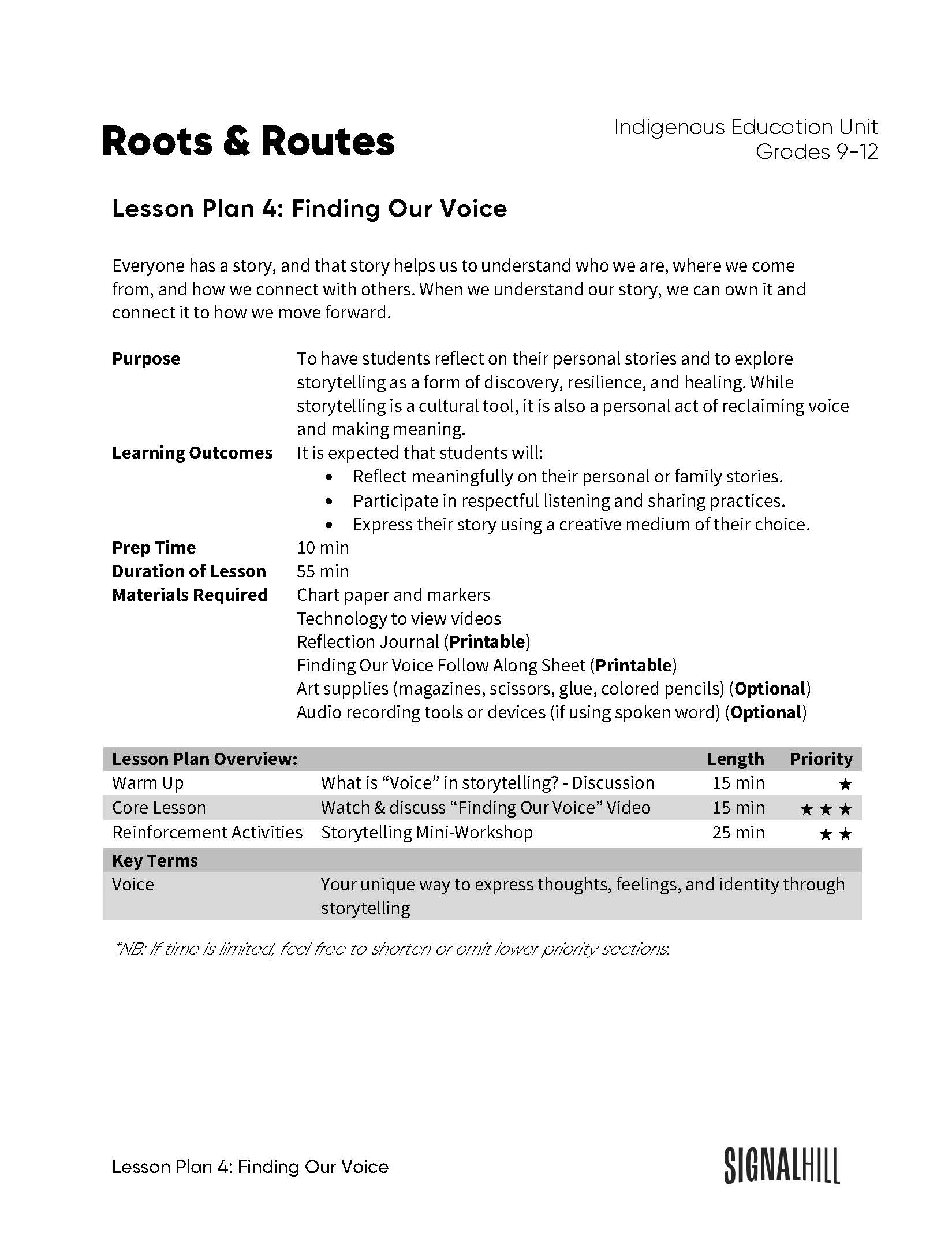 • Roots and Routes lesson plans, streamable videos, and accompanying printable material