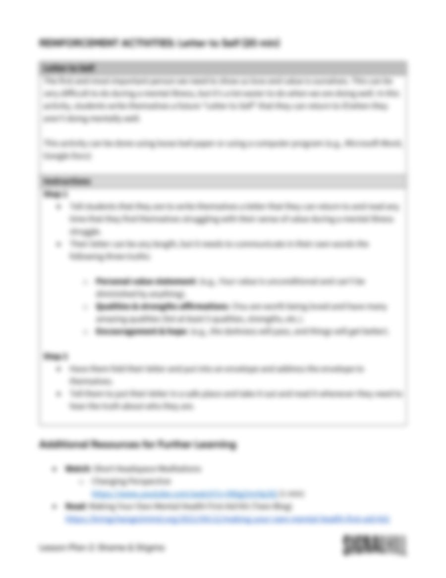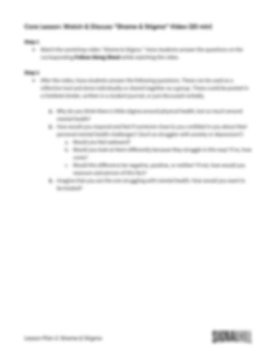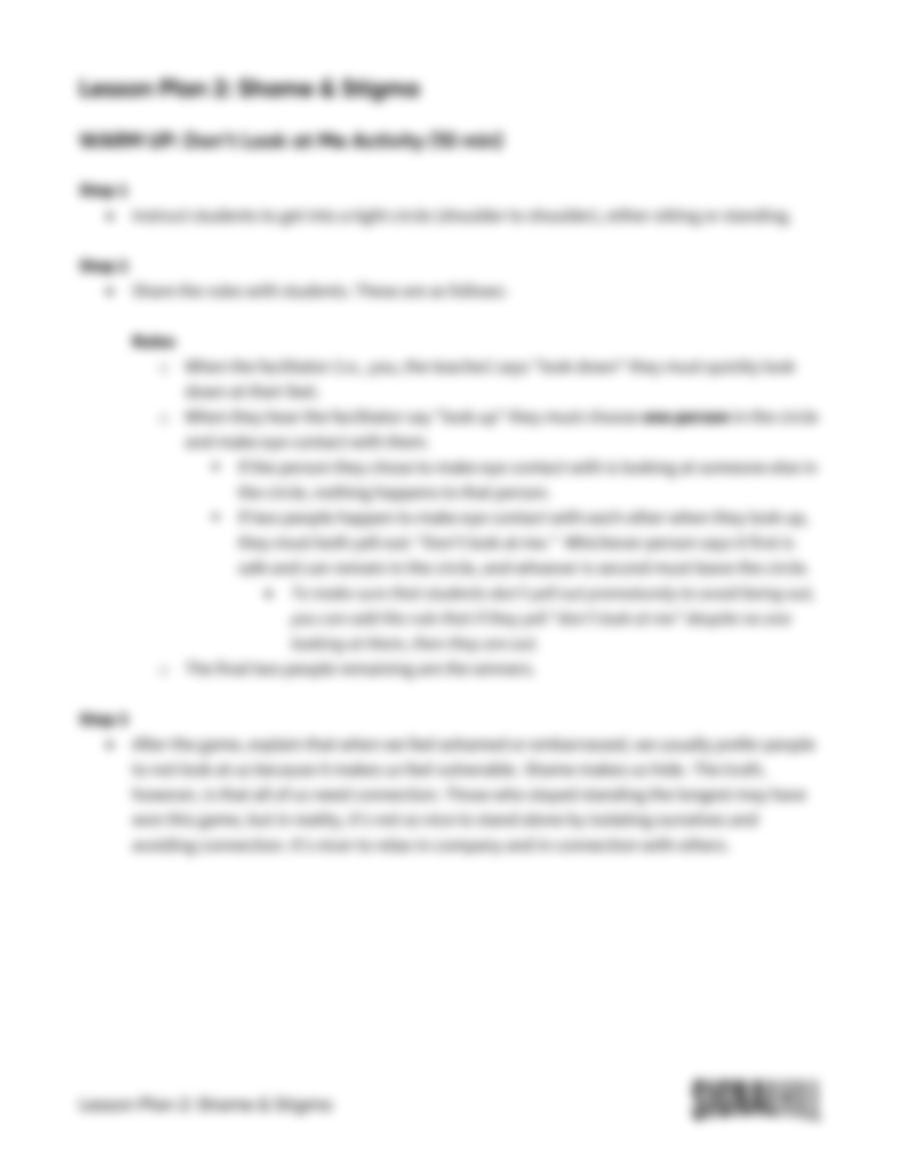 Lesson Plan 2: Shame & Stigma