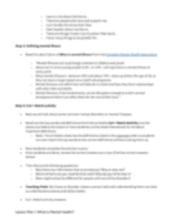 Mental health impacts the way that we live, so understanding of our own mental health is beneficial. In this lesson students are introduced to the concept of mental health and a number of common mental illnesses, while also exploring the accomplishments of people who have a mental illness.