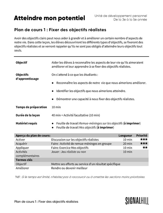 Plan de cours 1: Fixer des objectifs réalistes