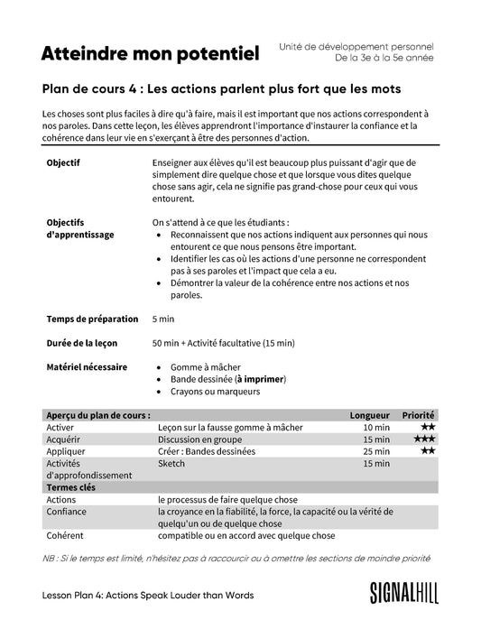 Plan de cours 4: Les actions parlent plus fort que les mots