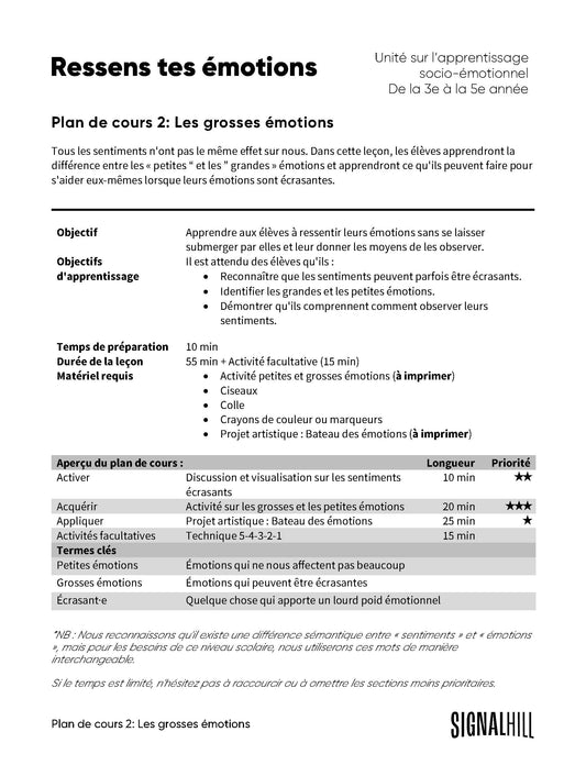 Plan de cours 2: Les grosses émotions