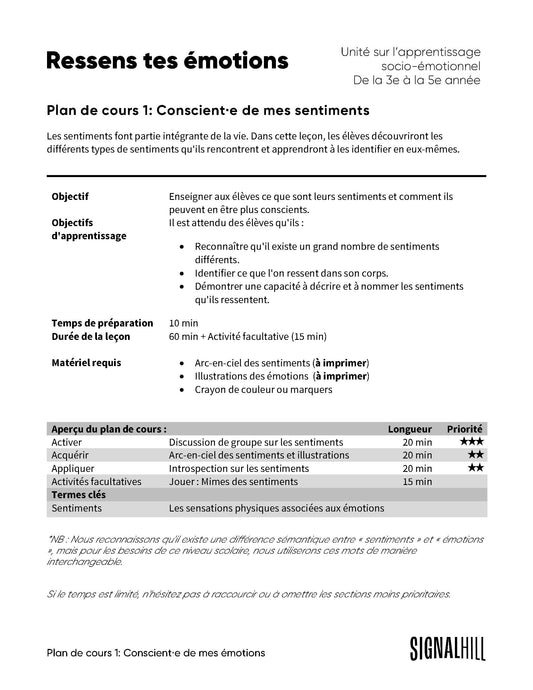 Plan de cours 1: Conscient·e de mes sentiments