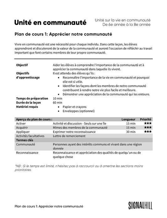 Unité de vie en communauté - Ensemble de plans de cours (4 plans de cours)