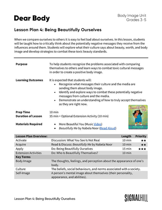 Lesson Plan 4: Being Beautifully Ourselves