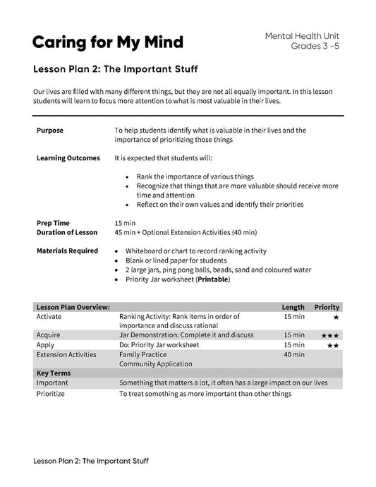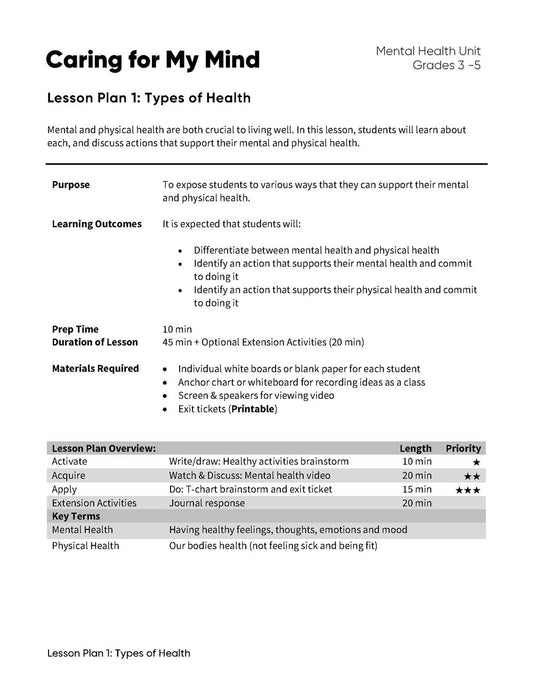 Caring for My Mind - Lesson Plan Bundle (4 Lesson Plans)