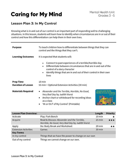 Lesson Plan 3: In My Control