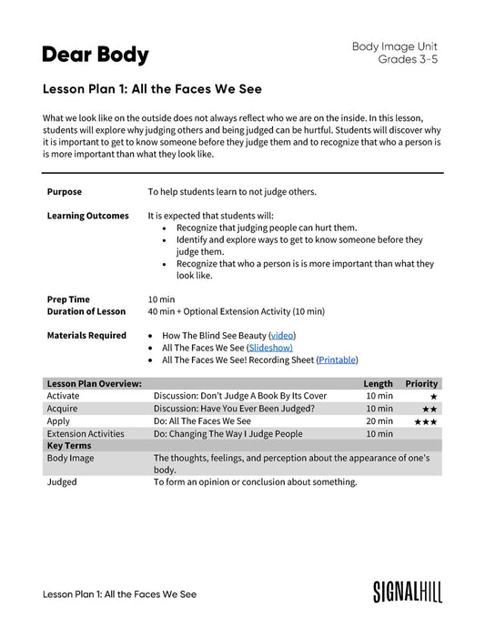 Dear Body - Lesson Plan Bundle (4 Lesson Plans)