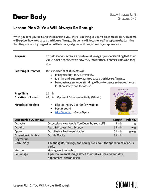 Lesson Plan 2: You Will Always Be Enough
