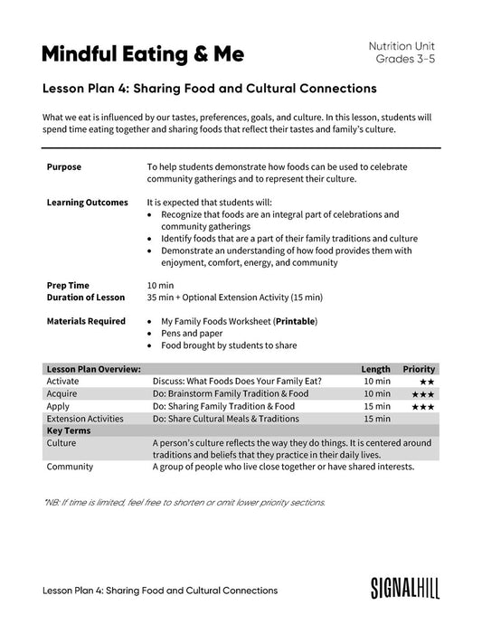 Mindful Eating & Me - Lesson Plan Bundle (4 Lesson Plans)