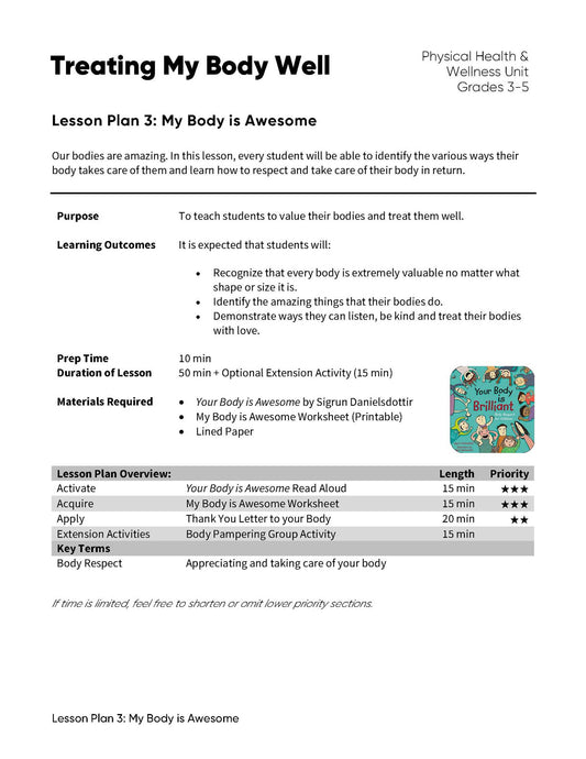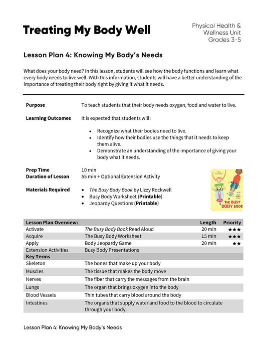 Treating My Body Well - Lesson Plan Bundle (4 Lesson Plans)