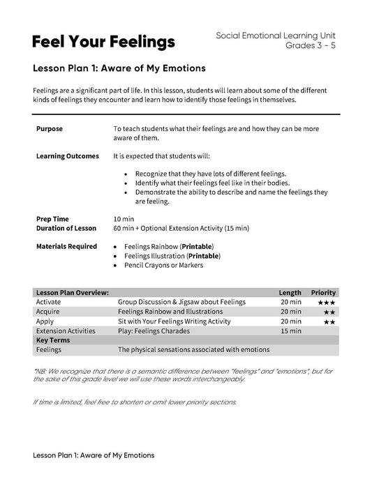 Feel Your Feelings - Lesson Plan Bundle (4 Lesson Plans)