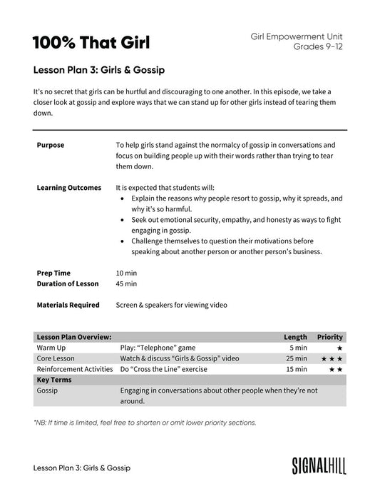 100% That Girl - Lesson Plan Bundle (4 Lesson Plans)