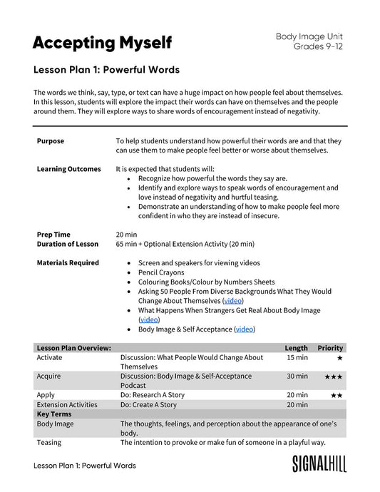 Accepting Myself - Lesson Plan Bundle (4 Lesson Plans)