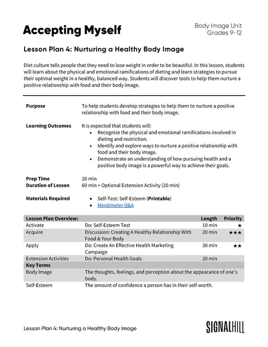 Lesson Plan 4: Nurturing a Healthy Body Image