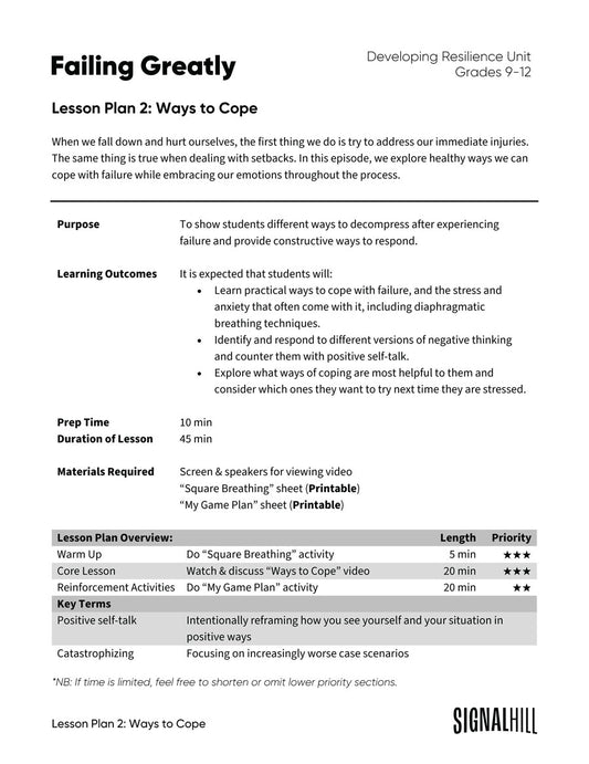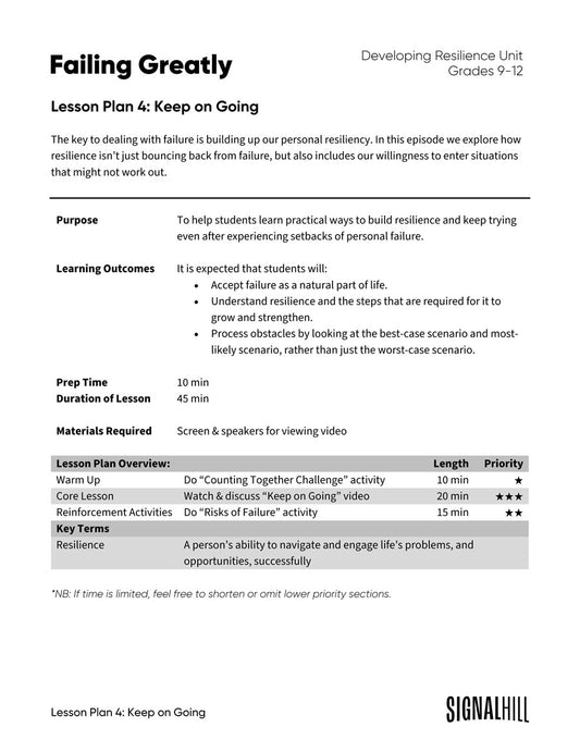 Failing Greatly - Lesson Plan Bundle (4 Lesson Plans)