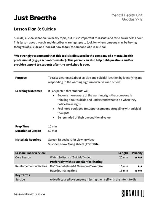 Just Breathe - Lesson Plan Bundle (8 Lesson Plans)
