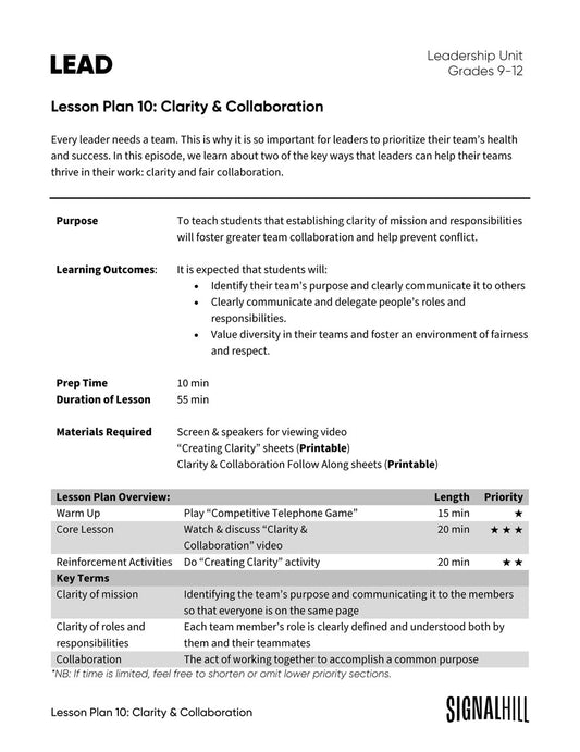 Lead - Lesson Plan Set (12 Lesson Plans)