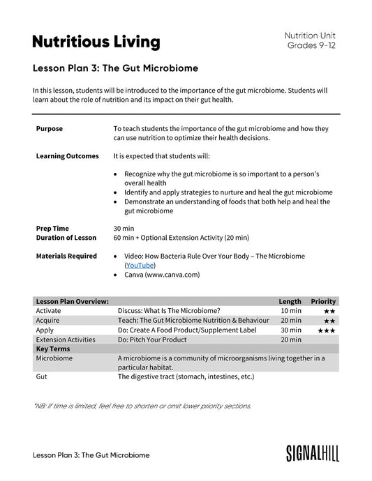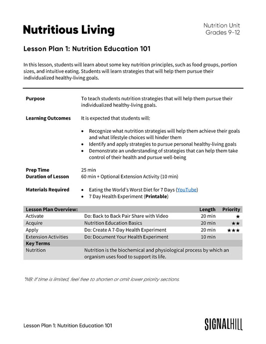Nutritious Living- Lesson Plan Bundle (4 Lesson Plans)