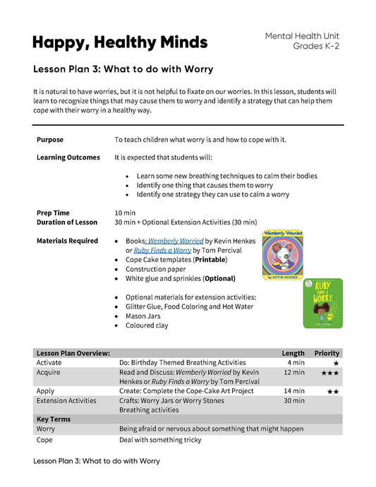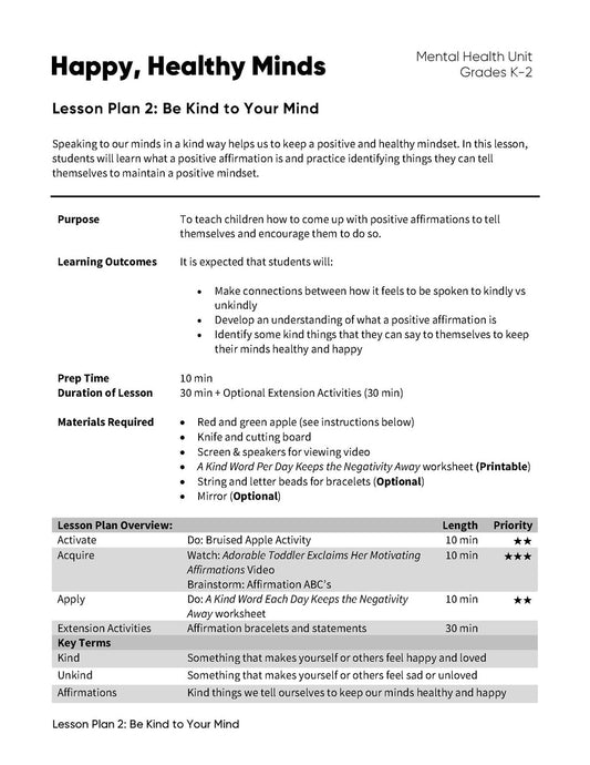 Happy, Healthy Minds - Lesson Plan Bundle (4 Lesson Plans)