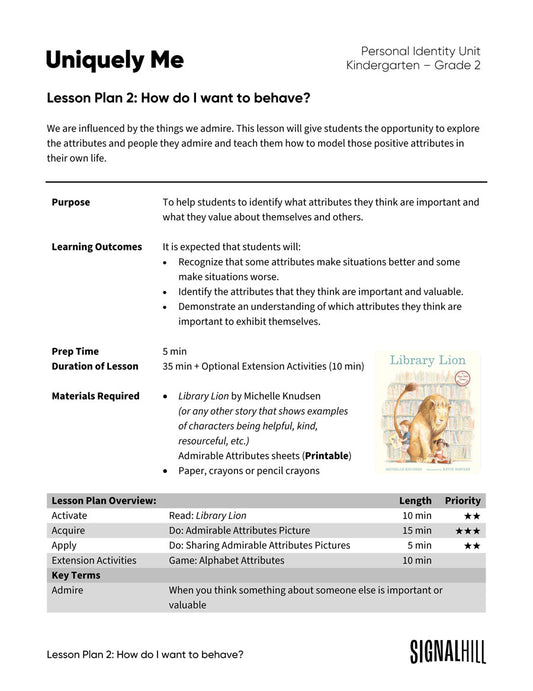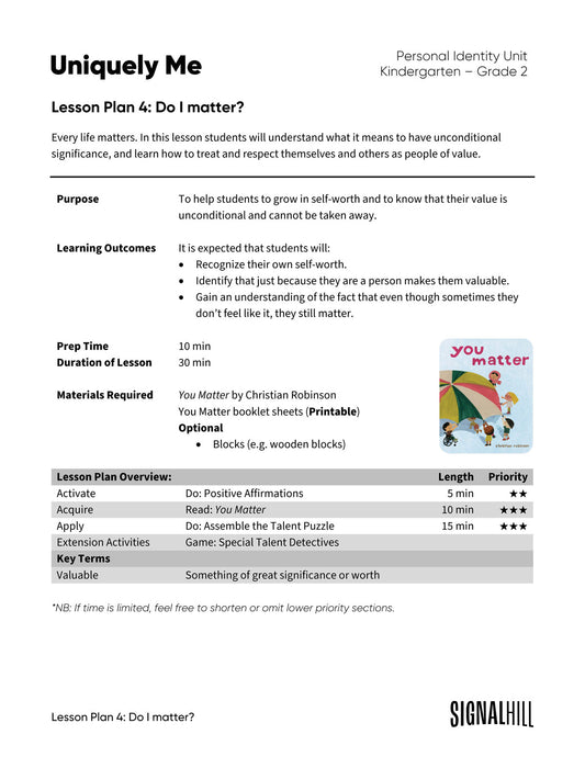 Uniquely Me - Lesson Plan Bundle (4 Lesson Plans)