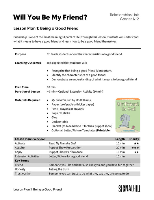 Will You Be My Friend? - Lesson Plan Bundle (4 Lesson Plans)
