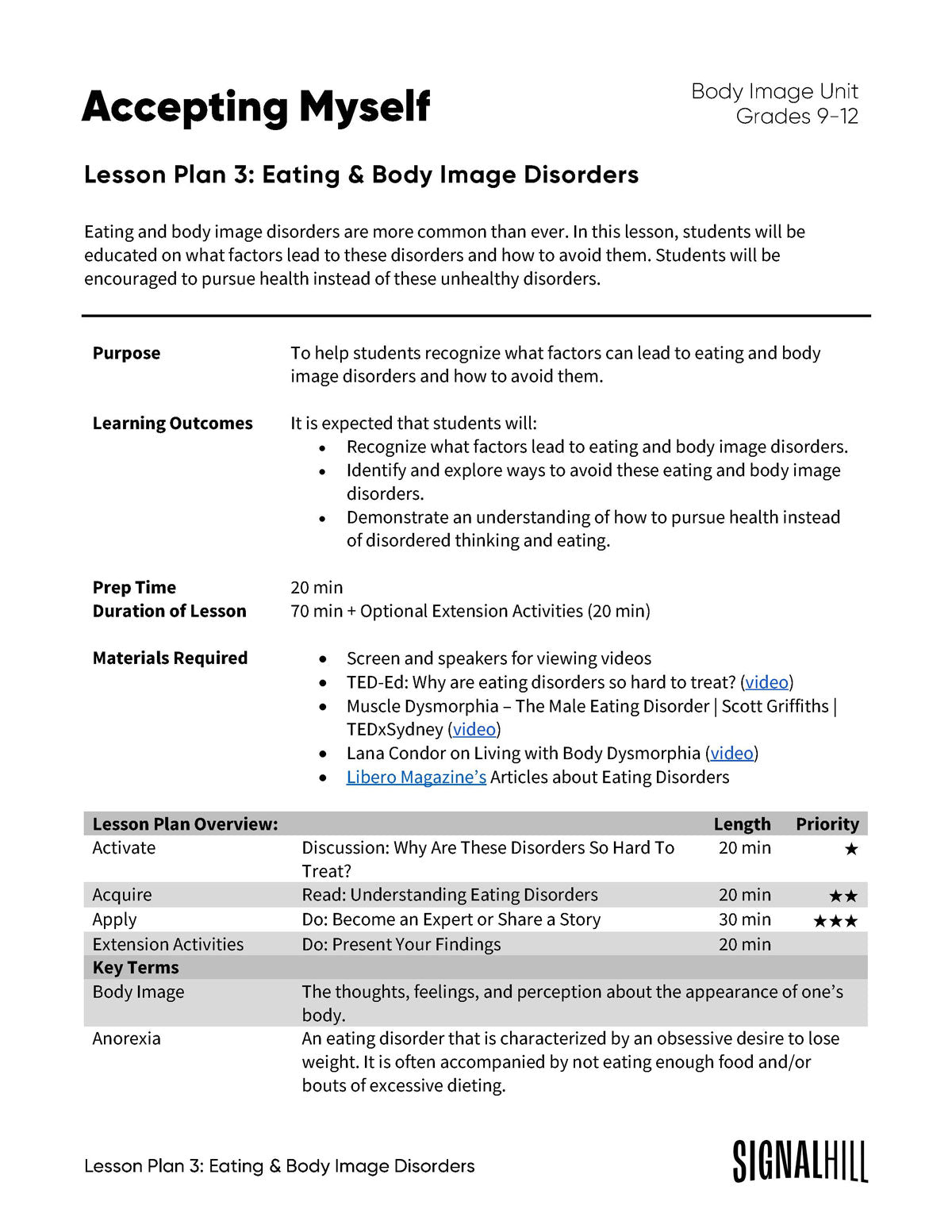 - Lesson Plan 4: Nurturing a Healthy Body Image