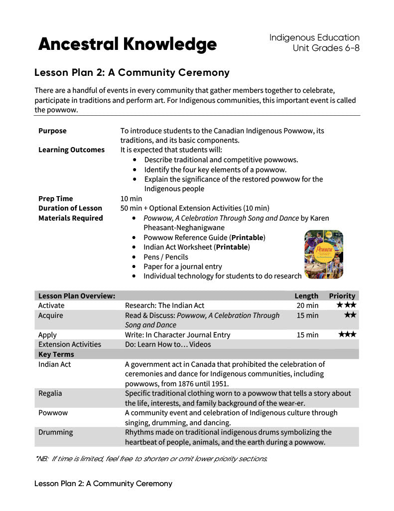 Education unit for Grades 6-8 on Indigenous Education. This unit gives students an opportunity to learn about Indigenous Cultural elements like powwows, talking sticks and totem poles.