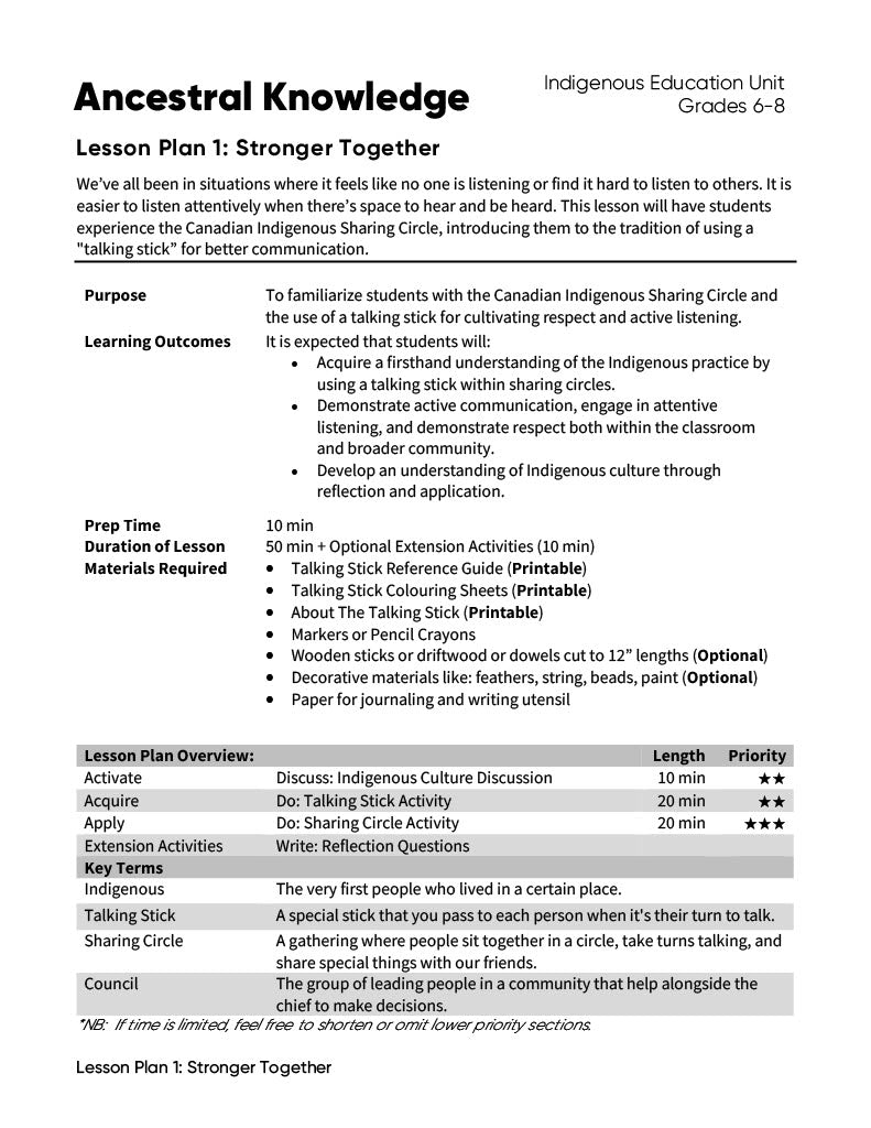 Ancestral Knowledge - Lesson Plan Bundle (4 Lesson Plans)