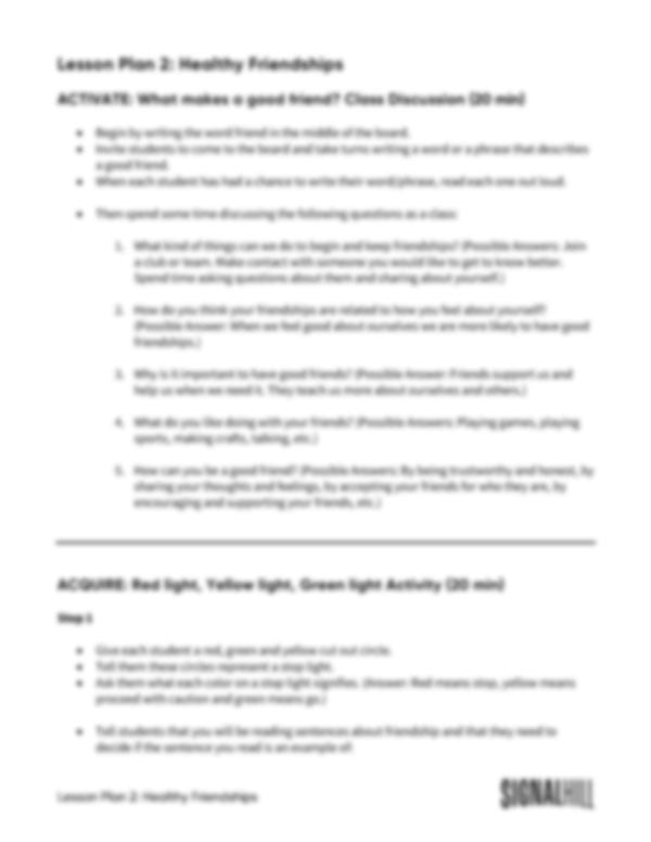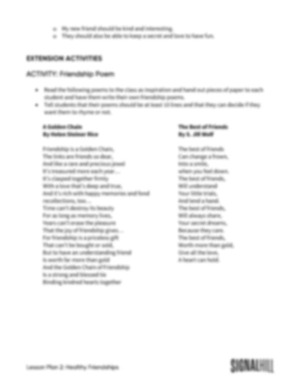 - Identify if a friendship is healthy, showing warning signs or is unhealthy.
