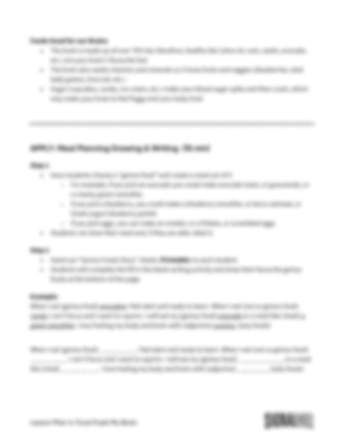- Demonstrate an understanding of what foods help them become better learners and what foods hinder them