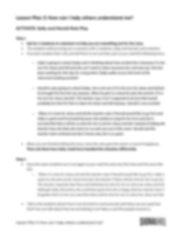 Lesson Plan 3: How Can I Help Others Understand Me?