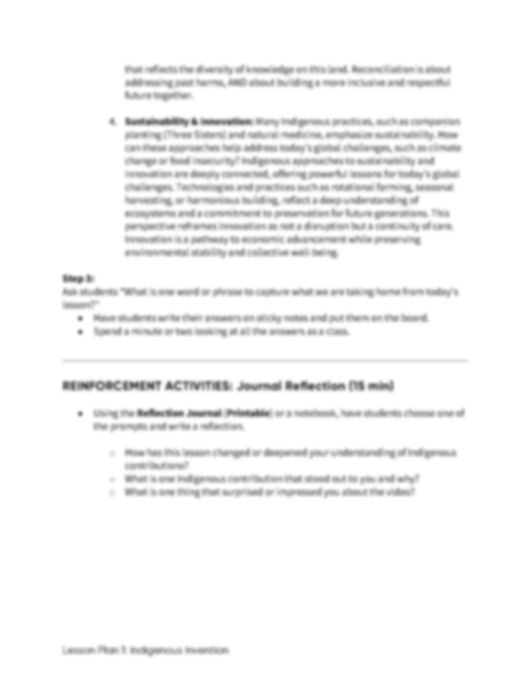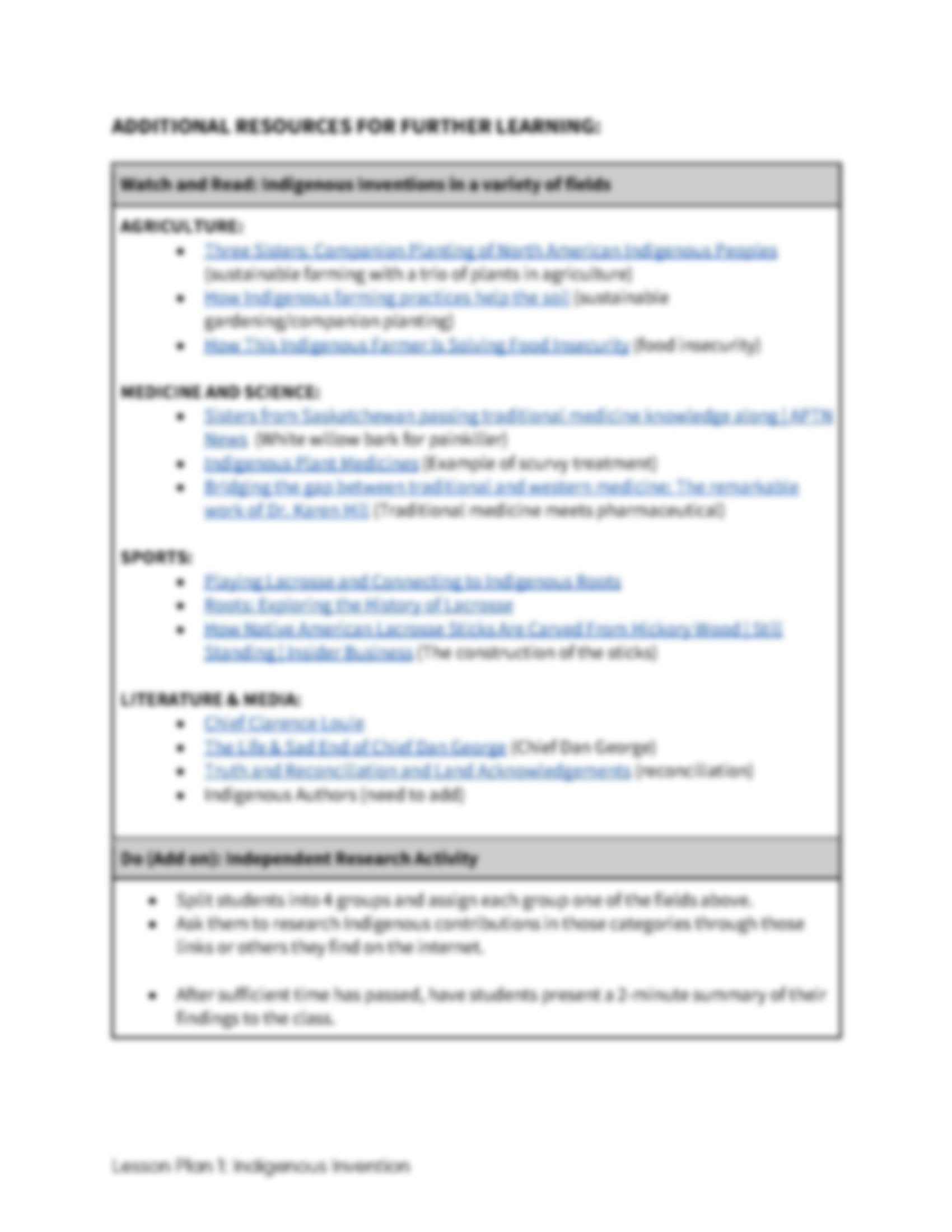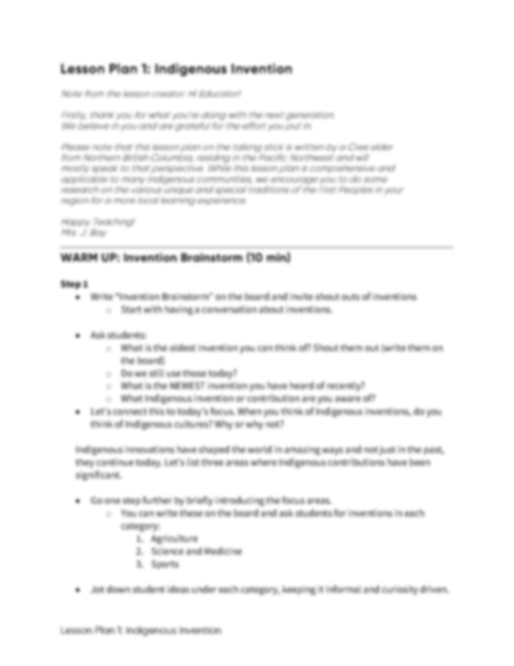 Lesson Plan 1: Indigenous Invention