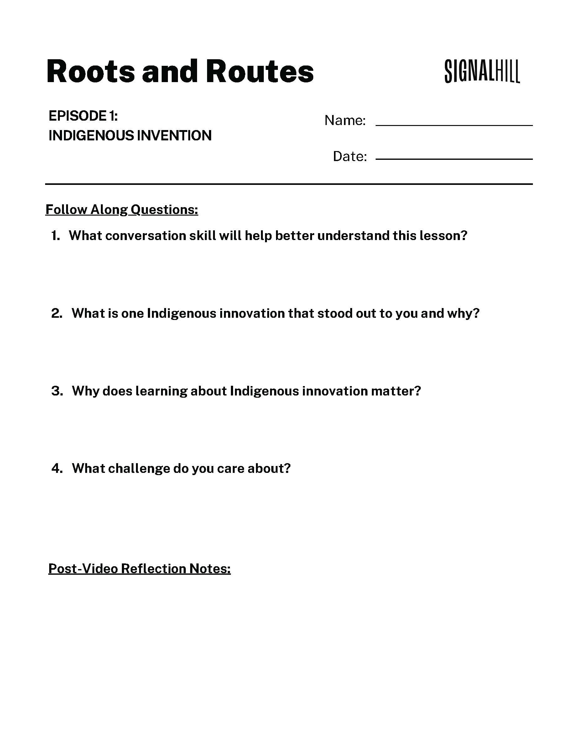 - “Indigenous Inventions” Follow Along Sheet (Printable)