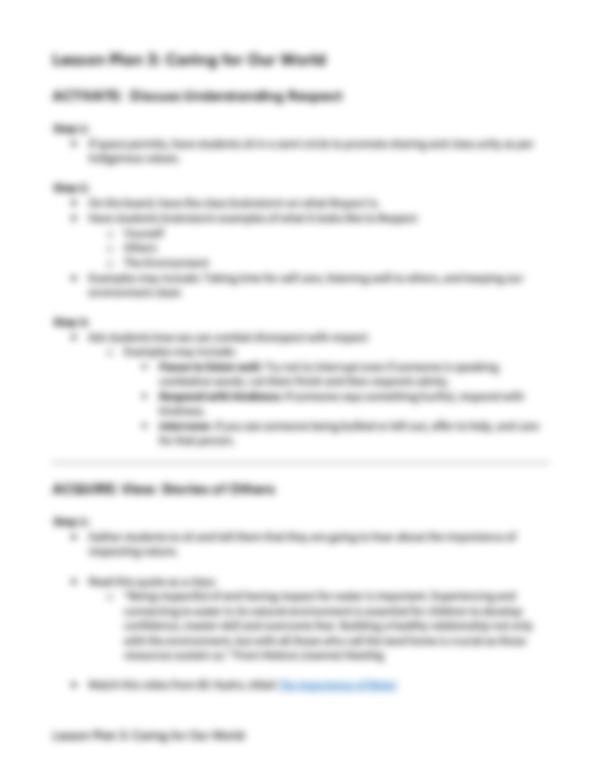Ever notice how when you care for yourself well, you tend to care for others and your surroundings well too? In this lesson, students will explore the importance of respecting and valuing self and how that relates to our relationships with others and our surroundings with water as the main example. In Indigenous culture, water is admired as a life-giving source and something to respect.