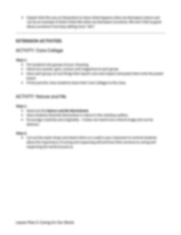 - Identify ways in which the relationships they have with self translates to relationships with others and the environment