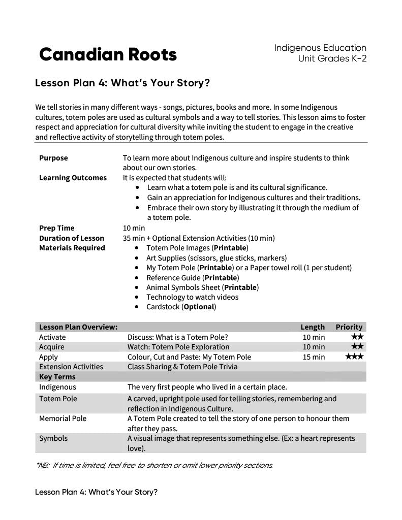 We tell stories in many different ways - songs, pictures, books and more. In Indigenous cultures, totem poles are used as cultural symbols and a way to tell stories. This lesson aims to foster respect and appreciation for cultural diversity while inviting the student to engage in the creative and reflective activity of storytelling through totem poles.