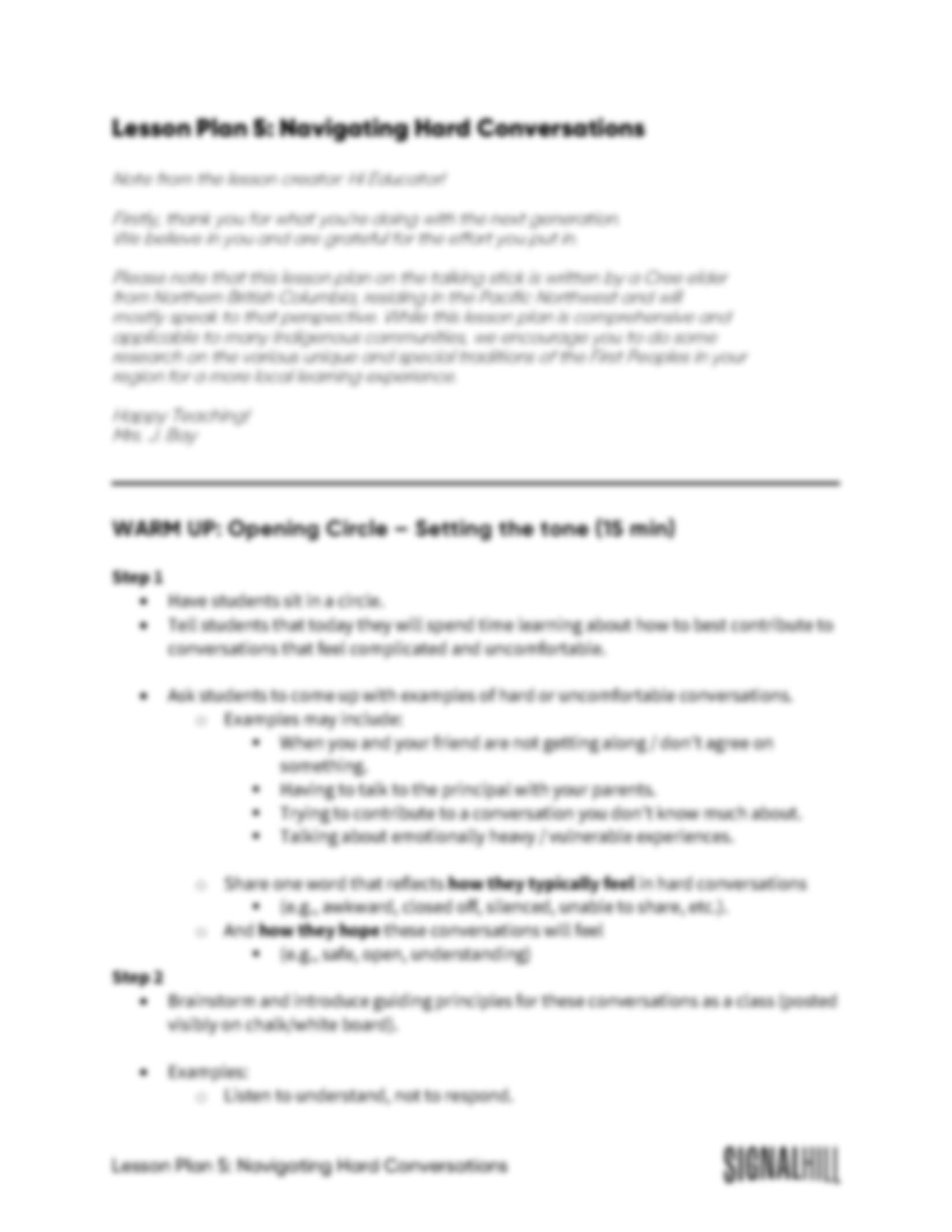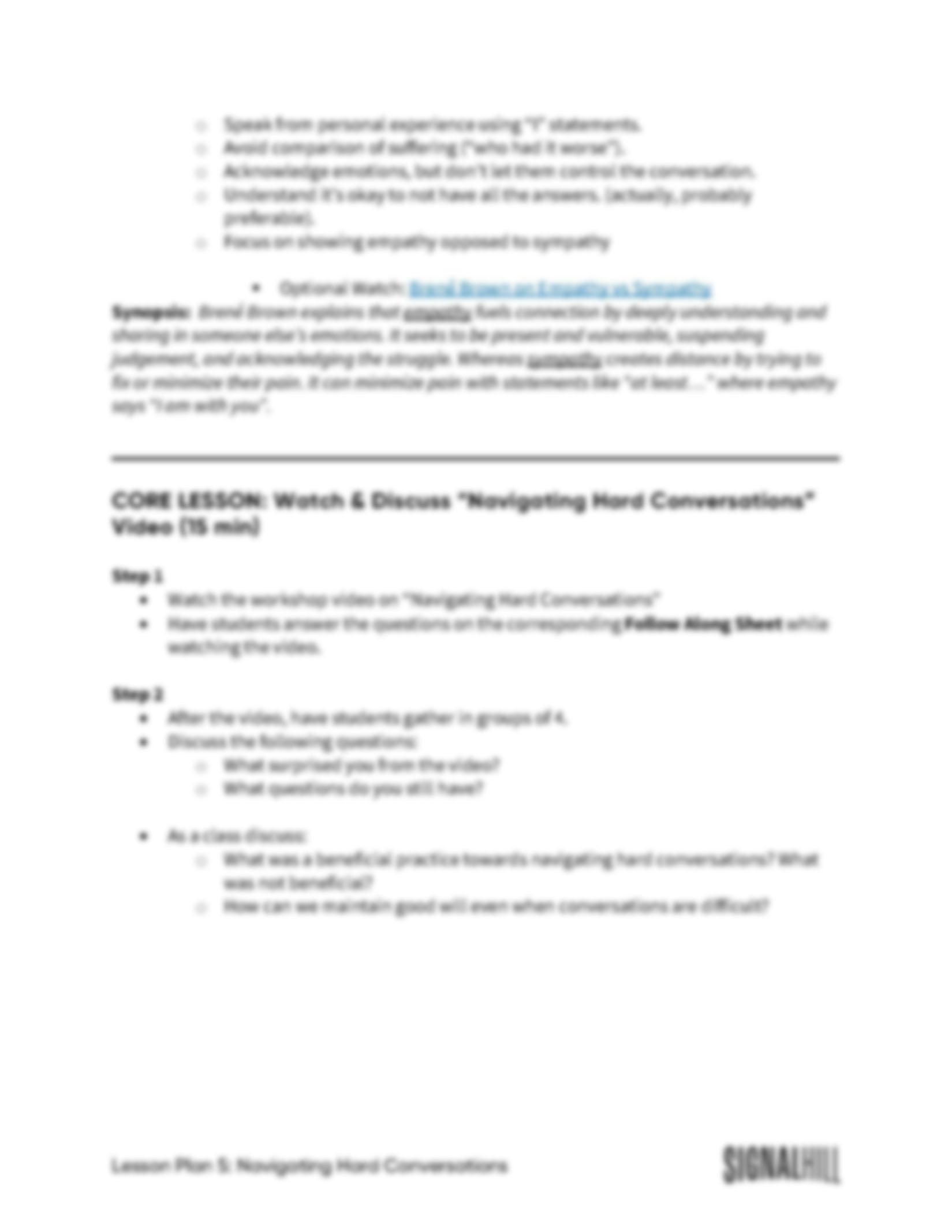 Lesson Plan 5: Navigating Hard Conversations