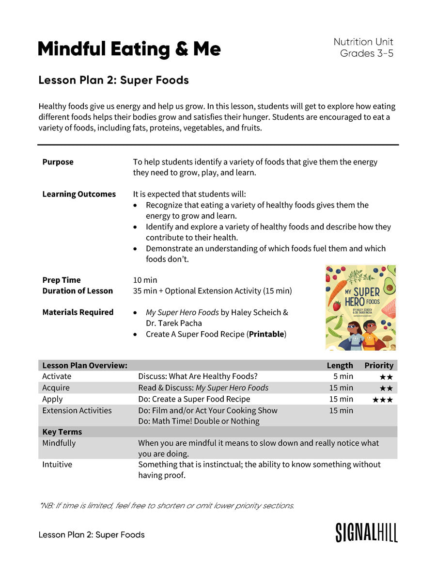 - All Mindful Eating & Me lesson plans and accompanying printable material