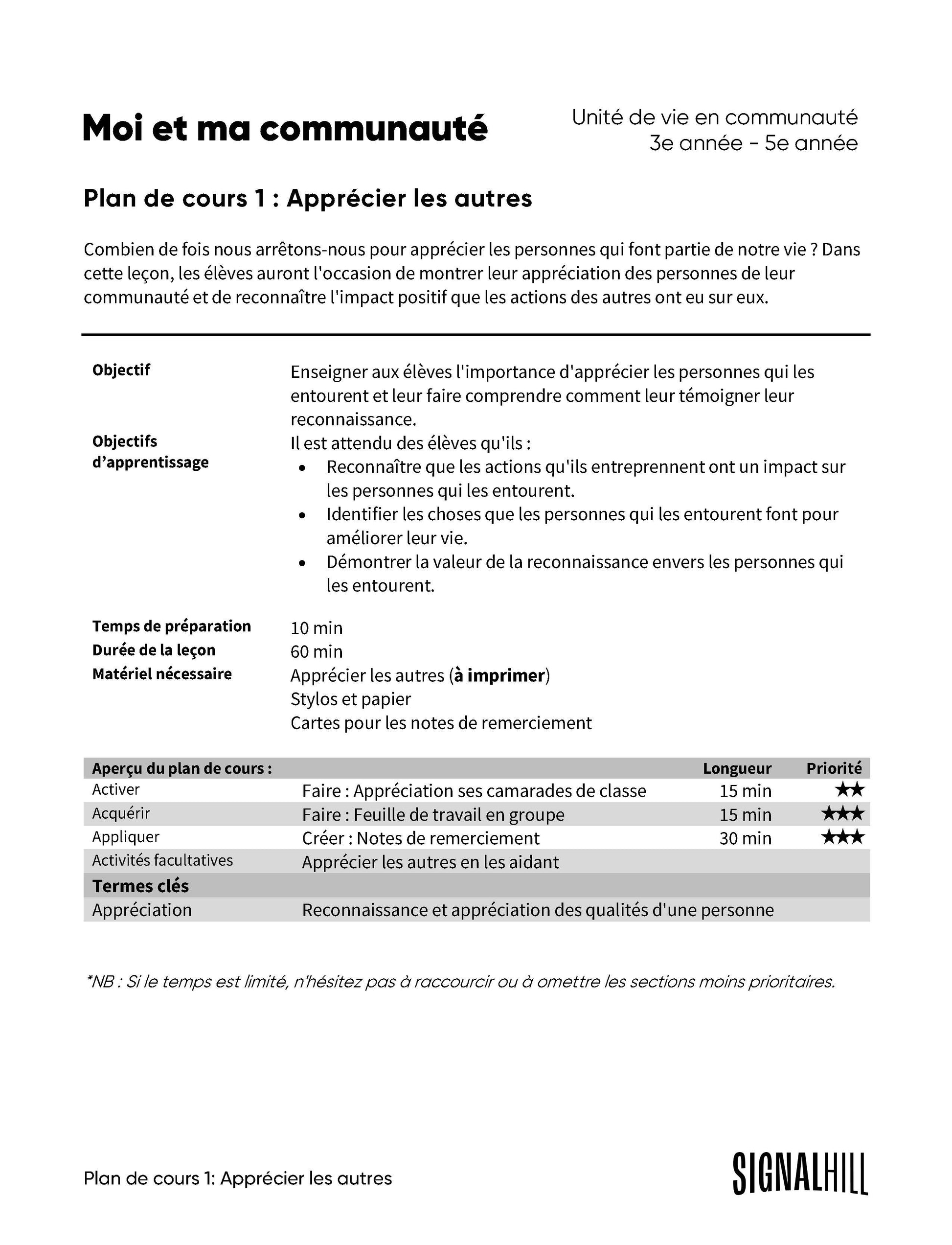 - Tous les plans de cours Moi et ma communauté et le matériel imprimable associé.