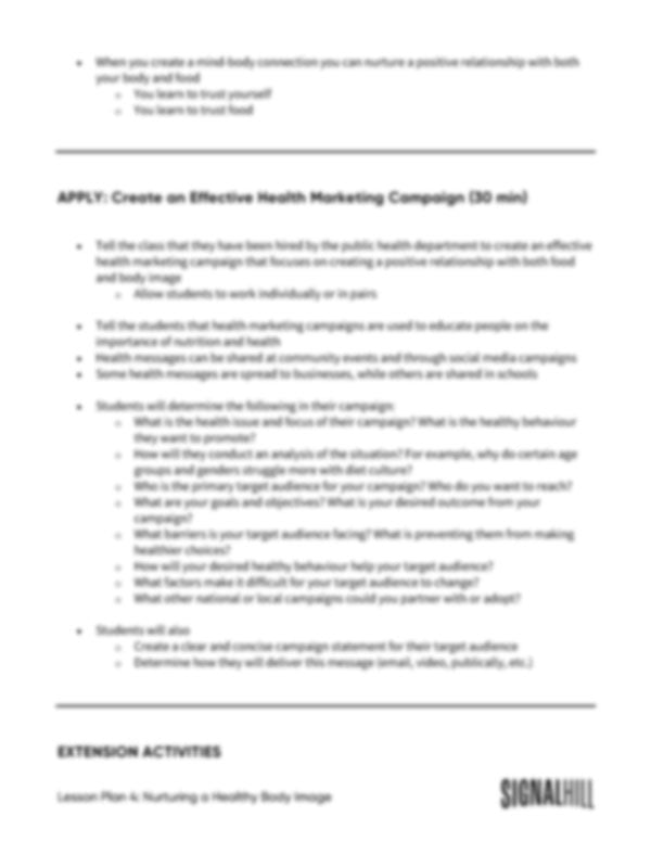 Lesson Plan 4: Nurturing a Healthy Body Image