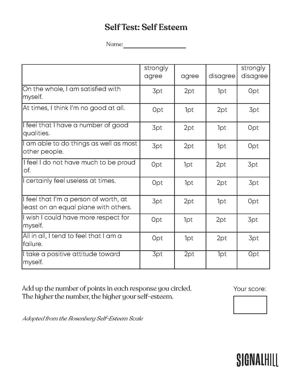- Self-Test: Self-Esteem (Printable)