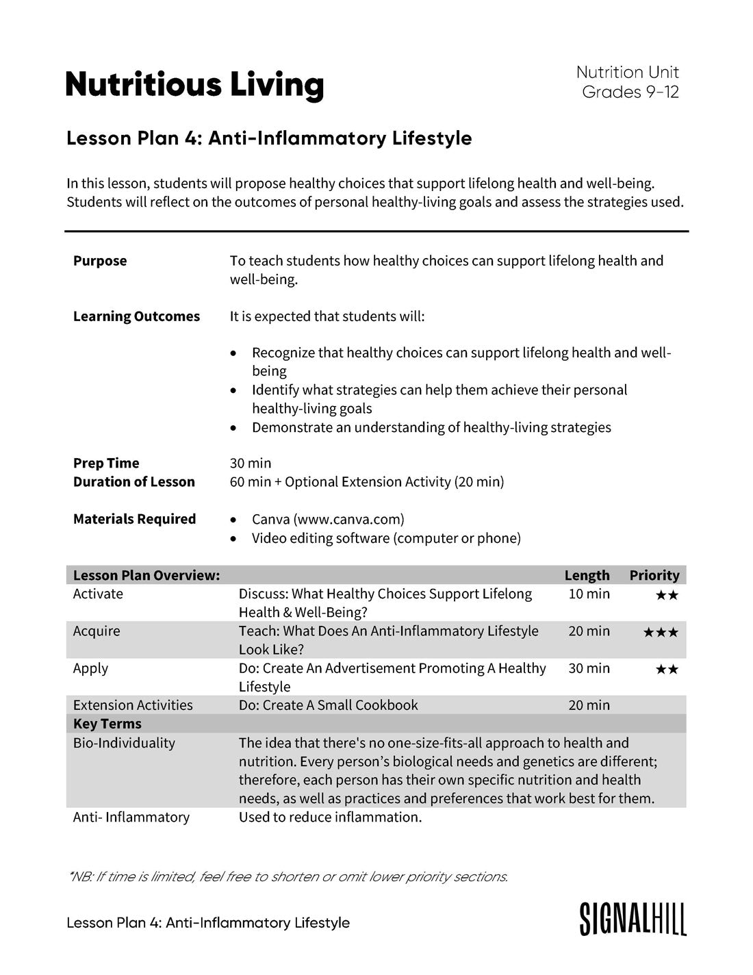 - Lesson Plan 4: Anti-Inflammatory Lifestyle
